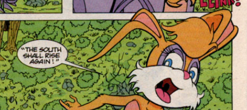 Oh, nothing big. Just Bunnie Rabbot saying some Confederate slogan in the middle of a mecha brawl.